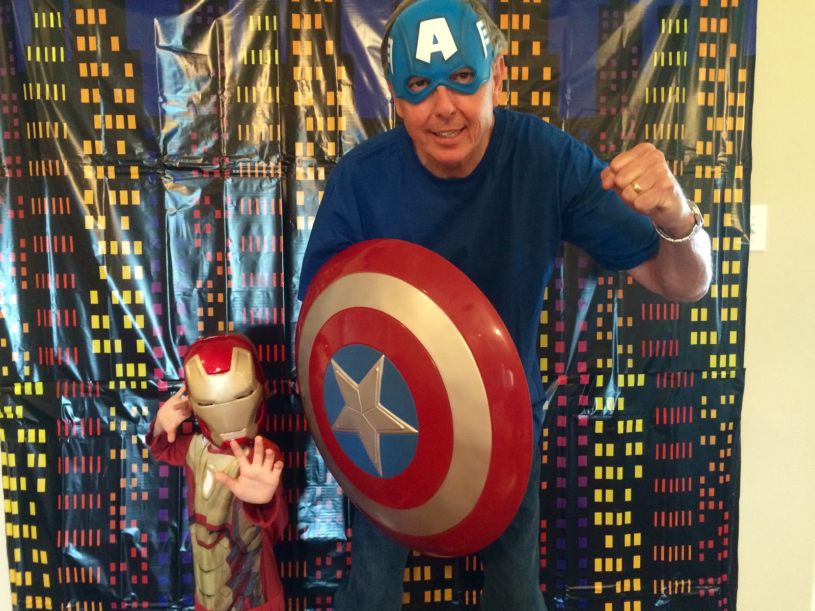We settled on a theme of Super Heroes for this year's party! Collin received an Iron Man costume from his Aunt Jami last year, and he was determined to dress as Iron Man for his party this year. He even wore an Iron Man t-shirt under the costume. Dedication!